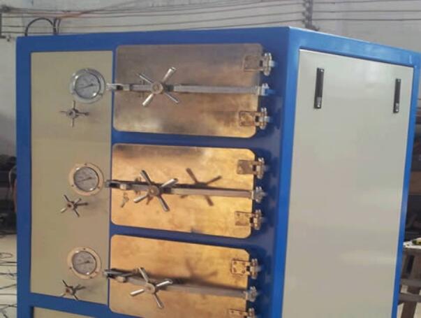 真空室從內到外由室體、門和托盤組成。3.1.1、 真空室體材質為不銹鋼,厚度為6mm,室體外部加加強筋,開門方向可由用戶自定,室體容積為600×700×300mm(寬×深×高),分為上中下三室。室體腔內下部裝有托盤軌道及防滑裝置。